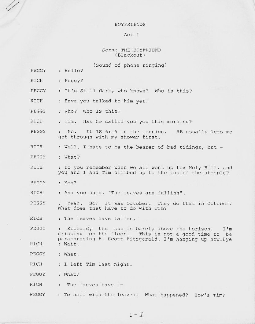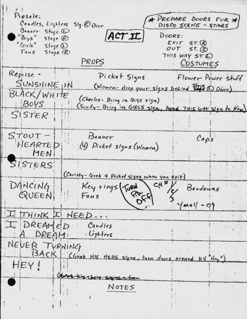 BONUS: Behind the Scenes: a page from the original script of 1993 "Boyfriends" concert