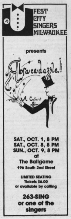 Ad for October 1988 "Abracadazzle" Cabaret show