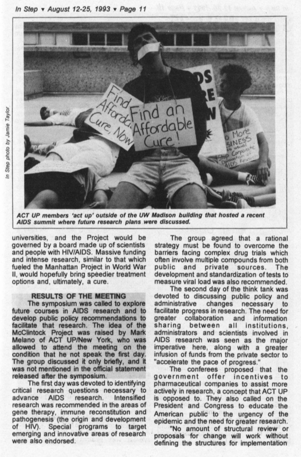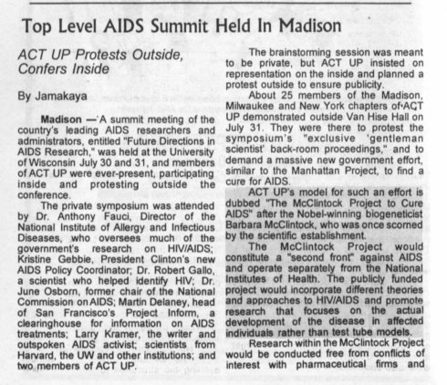 Top level AIDS Summit held in Madison; ACT-UP protests outsides, confers inside
