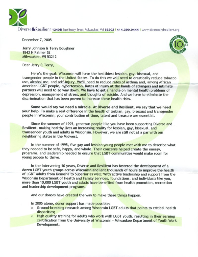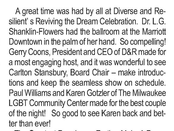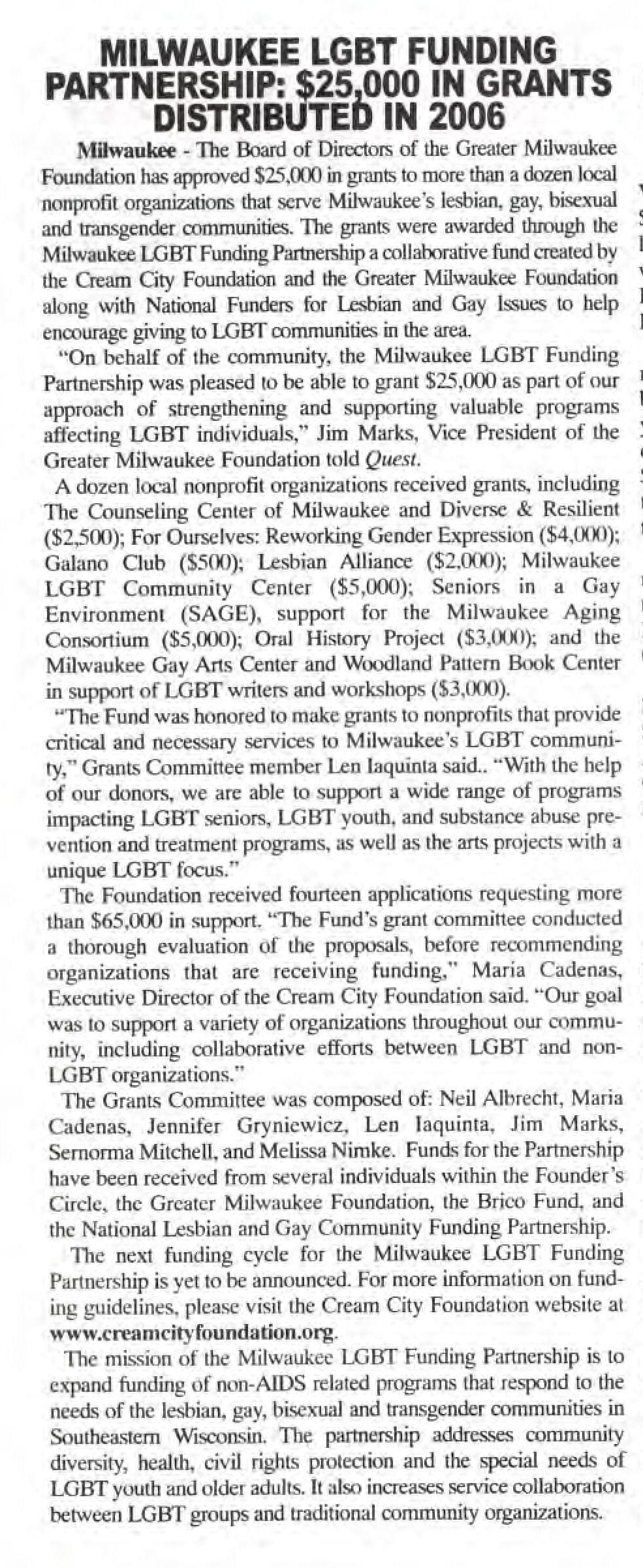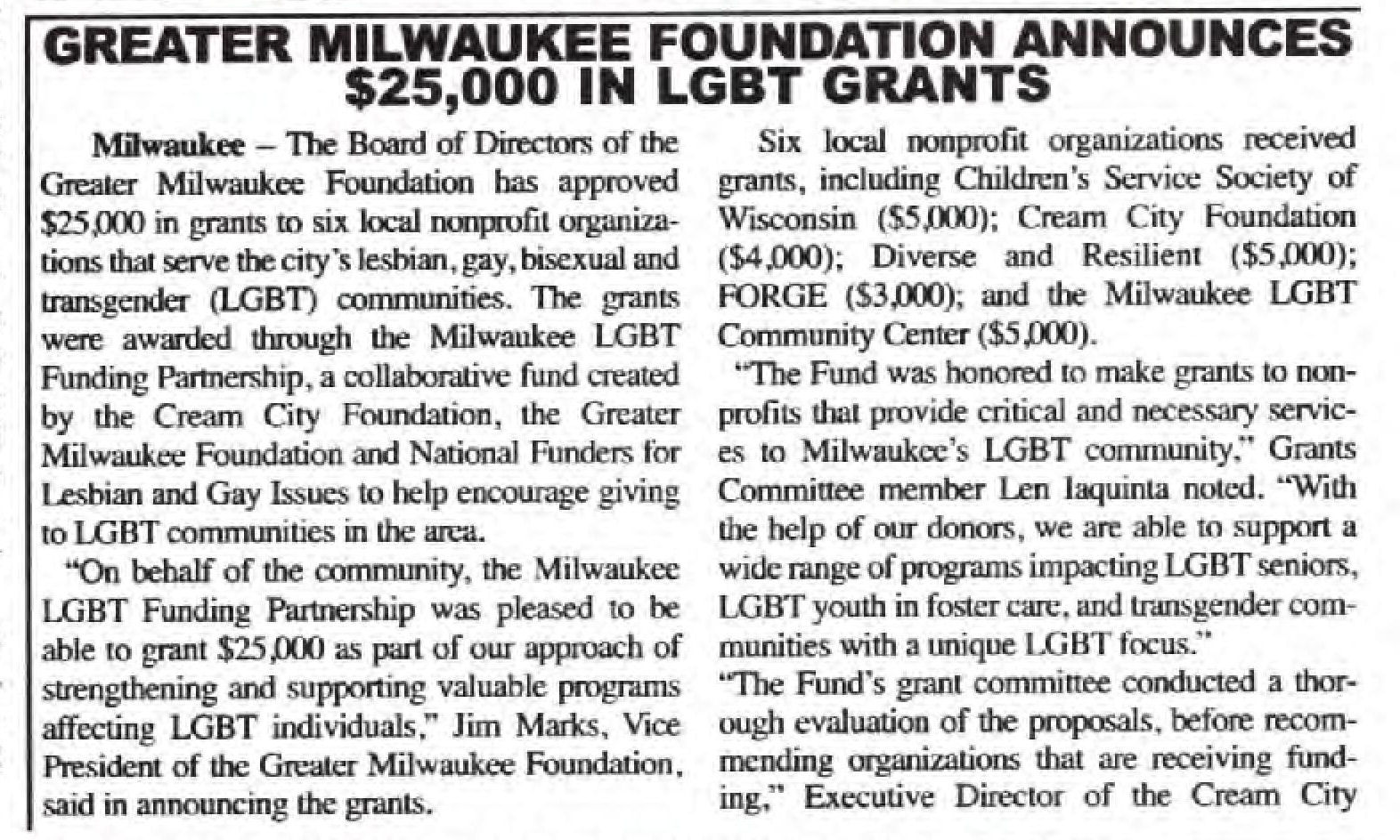 Greater Milw Foundation (through Milw LGBT Funding Partnership) awards $5,000 grant to D&R