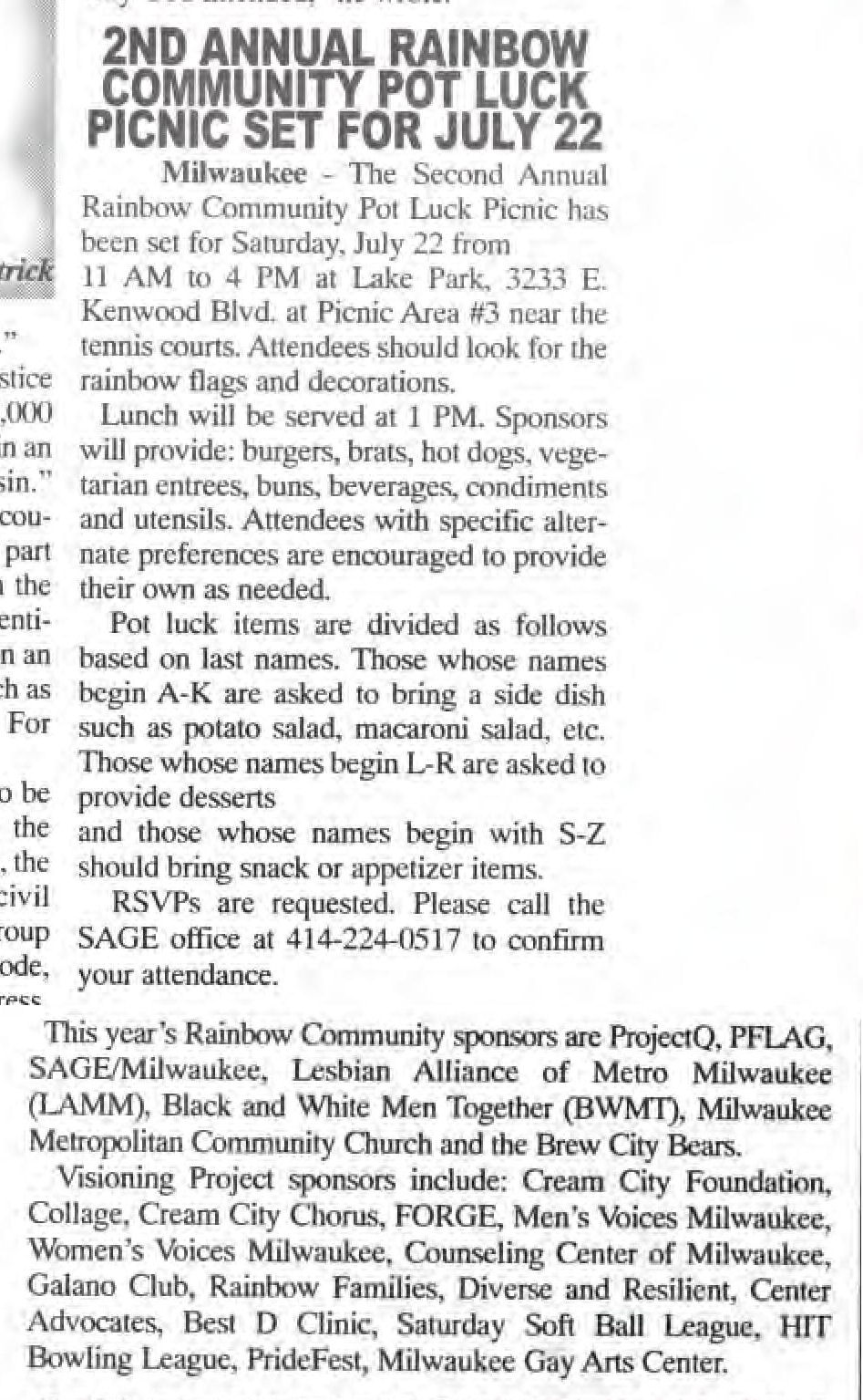 D&R sponsors Visioning Project for 2nd Annual Rainbow Community pot luck picnic