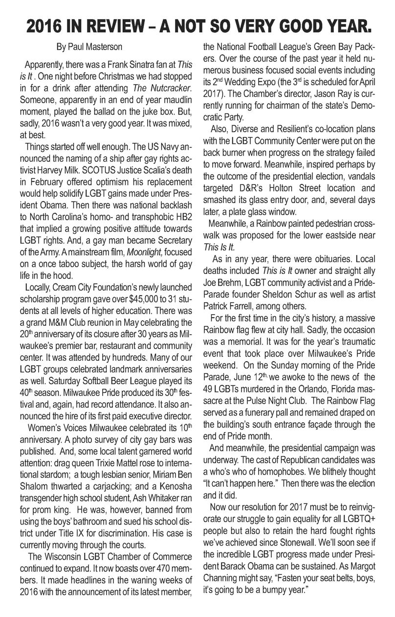 In 2016 Year in Review article: D&R puts relocation to LGBT Community Center oin hold; later in year, vandals smash windows in current Holton Street location