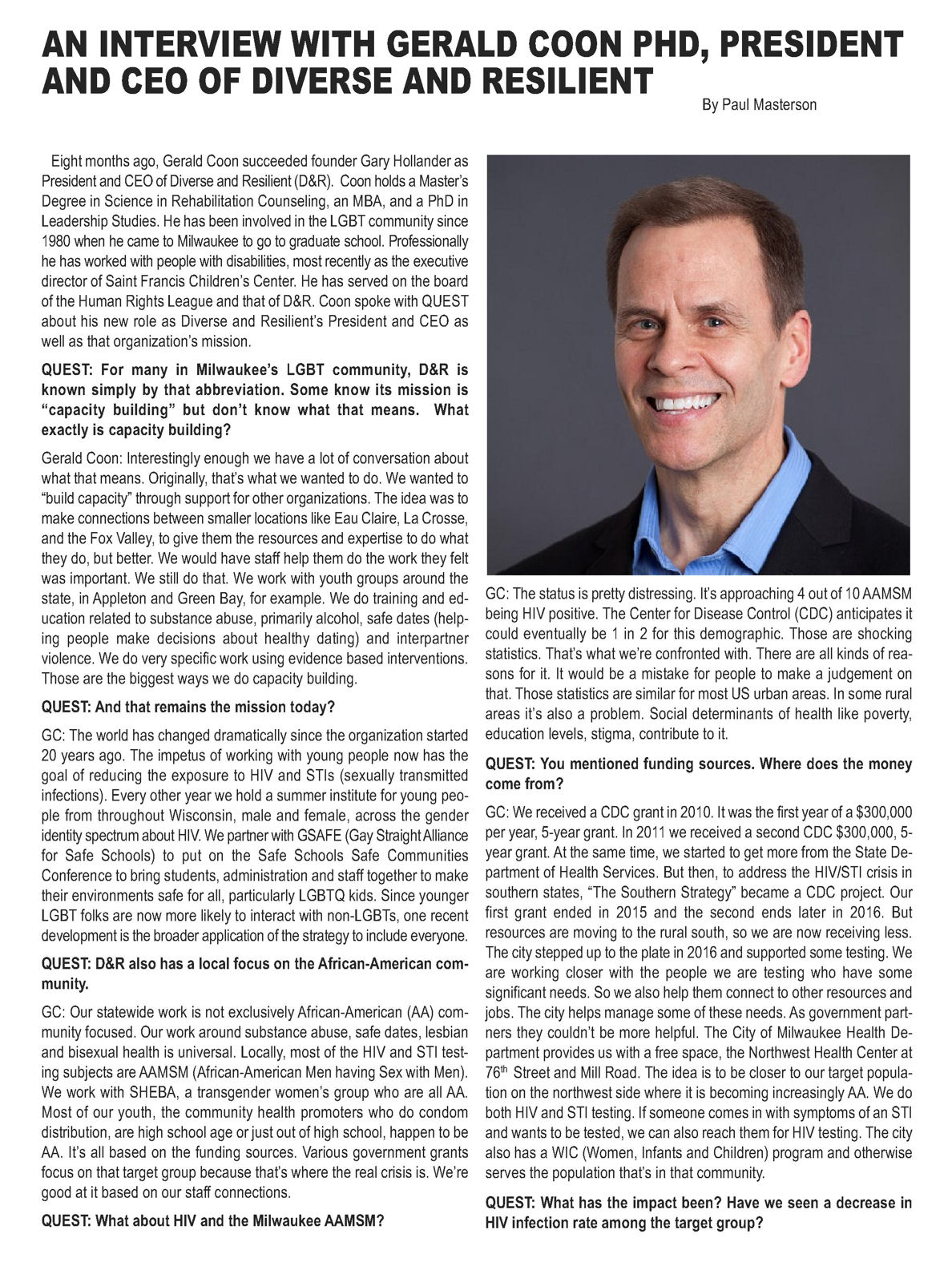 New President & CEO Gerry Coon interviewed by Quest magazine