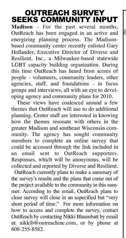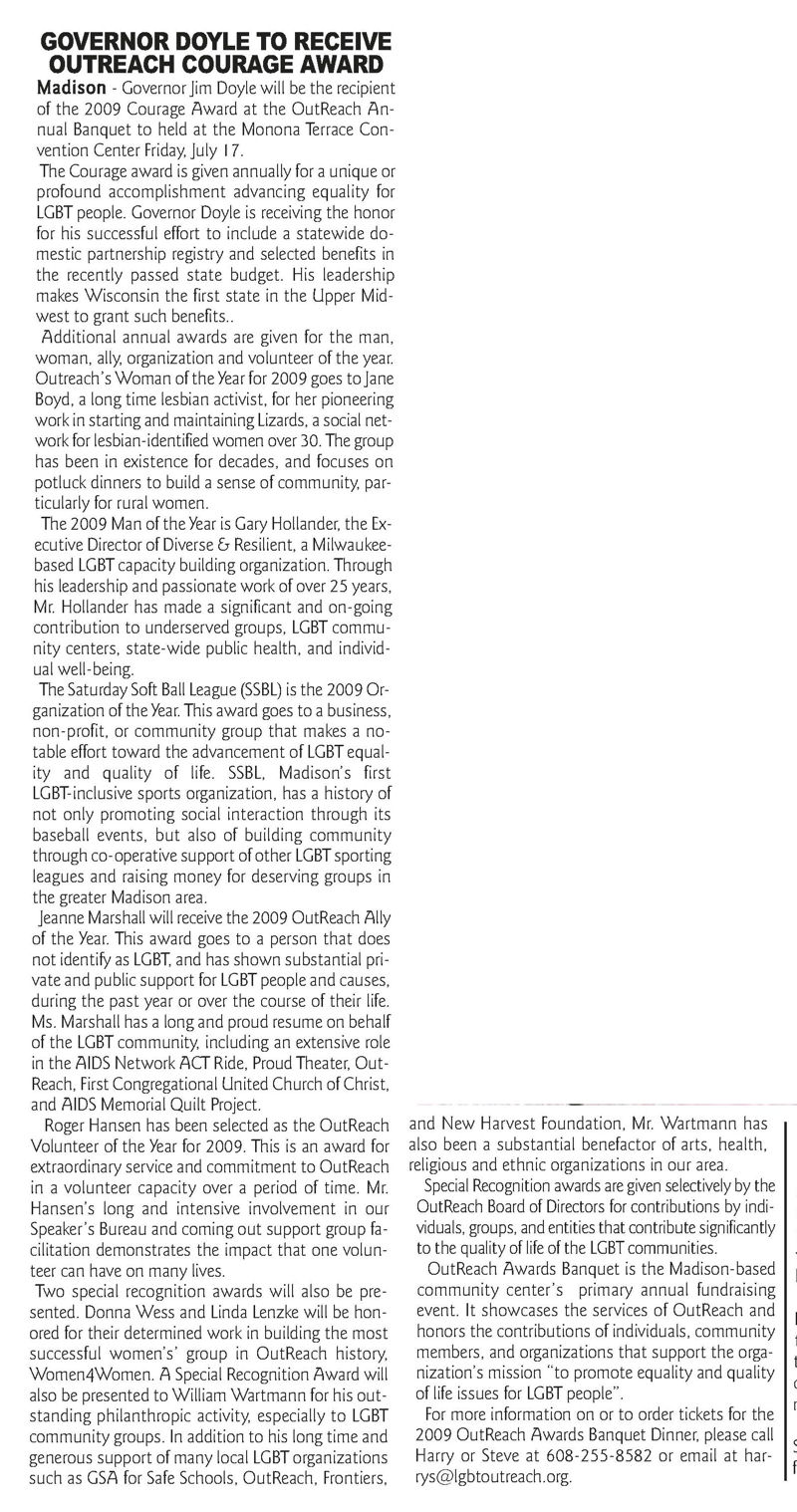 Gary Hollander, Executive Director of D&R, awarded 2009 Man of the Year by OutReach of Madison