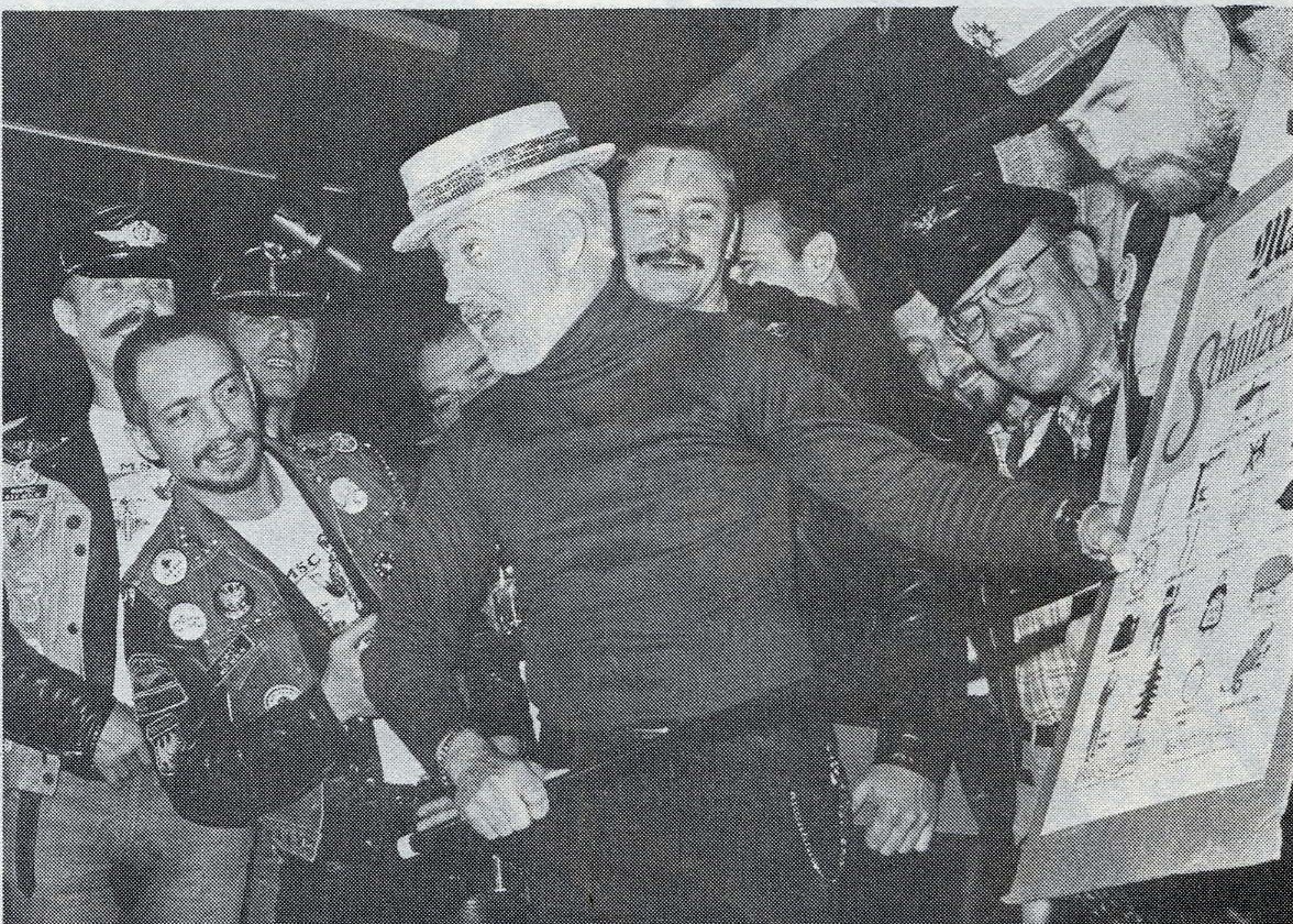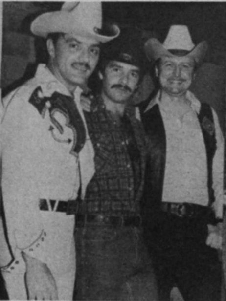 Vic Salmone and Roger Deeley of Silver Star, at Wreck Room Mr. Cowboy Contest, with Mr. Wreck Room, Jim Schniders Sept. 1980