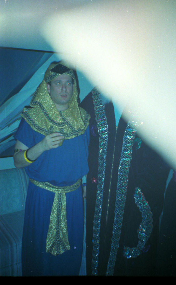 Leon Latz and Gary Crotty (Gary's face hidden behind white flaw in scan), hosts of Mardi Gras