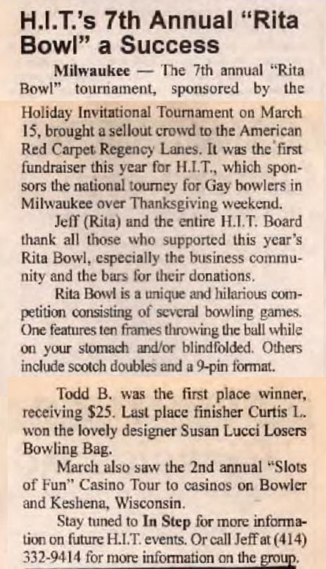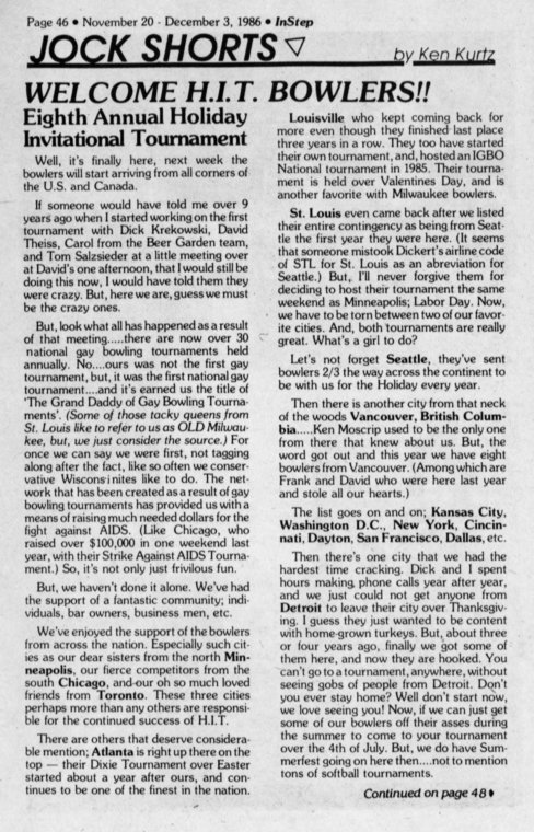 13th annual HIT/ Holiday Invitational Tournament of bowlers hosts over 300 gay and lesbian bowlers from around the country over Thanksgiving weekend
