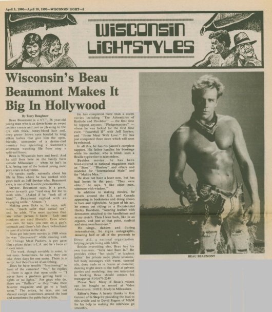 Upon retirement from the porn scene, Beau opened a greenhouse and store in the South Milwaukee/ Oak Creek area.