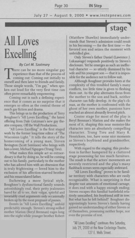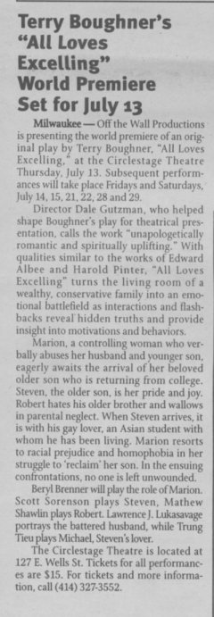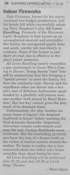 Review of Terry's "All Loves Excelling" play (Shepherd Express, July 20, 2000)