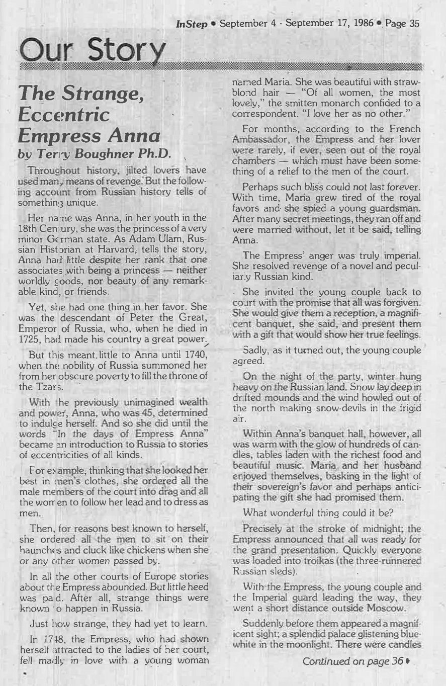 'Our Story' column: Empress Anna (In Step vol. 2-17, Sept. 1986)