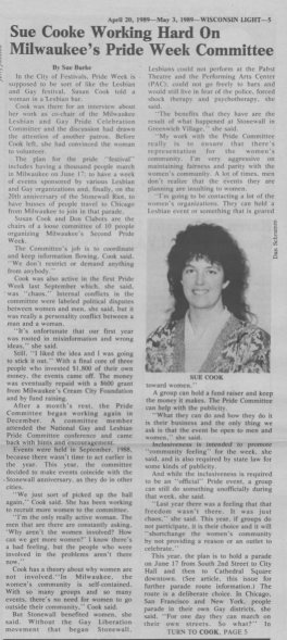 ![]() image1 ![]() image2 ![]() Article about Pride Committee work, May 1989 (Wis Light vol 2 issue 8) View page 2 of article |