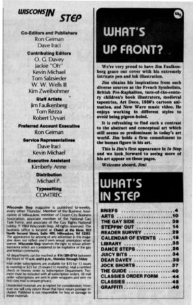 James Faulkenberg was an artist, and contributed at least 2 pieces as cover art for In Step magazine.