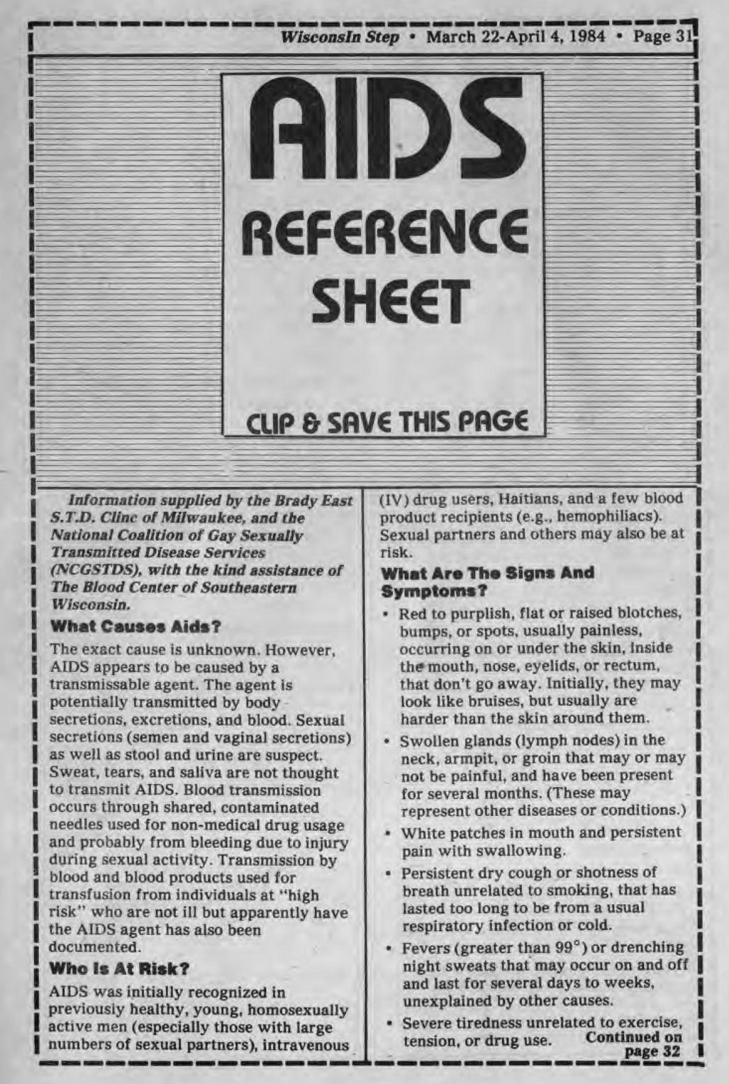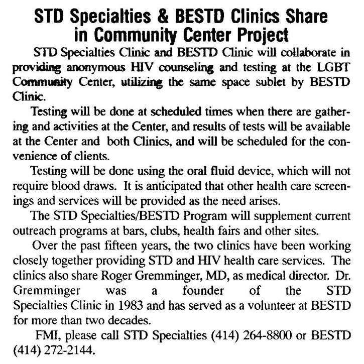 "I am a full-time emergency medicine physician (no private practice) who in addition has provided health care services to the Gay community (since 1978) on a volunteer basis. It was on January 11, 1978 when I was oriented and began to provide medical services at what was then the GPU VD Clinic. That was the occasion of my very first professional actions as a newly licensed physician. Since then I have remained a member of the medical staff of the clinic-- which has been knowns as the GPU VD Clinic, then GPU STD Clinic, then the Farwell STD Clinic, and finally as the present Brady East STD Clinic (BESTD Clinic)."