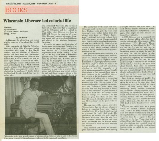 ![]() Typical photo of Liberace ![]() New book, "Liberace", 1988, by Bob Thomas (St. Martin's Press) |