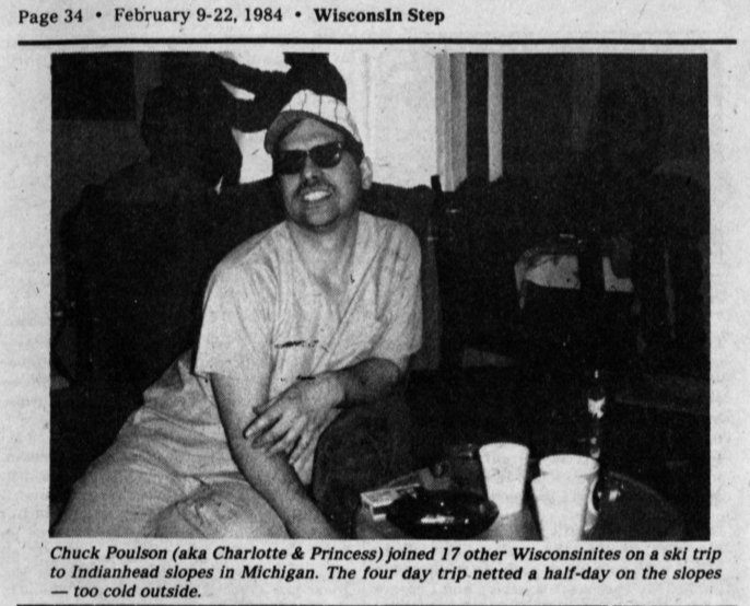 Chuck Poulson, also known as "Charlotte Lorraine", was a popular member of Milwaukee's LGBT community, doing entertainment, being involved in such activities as softball league, and may have done some bartending as well.