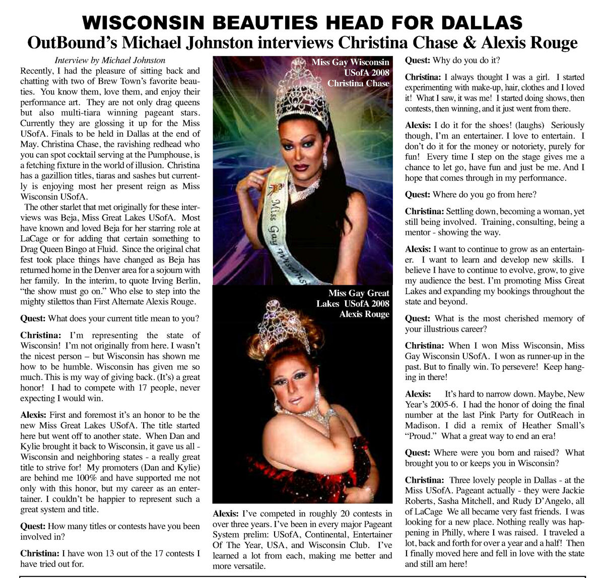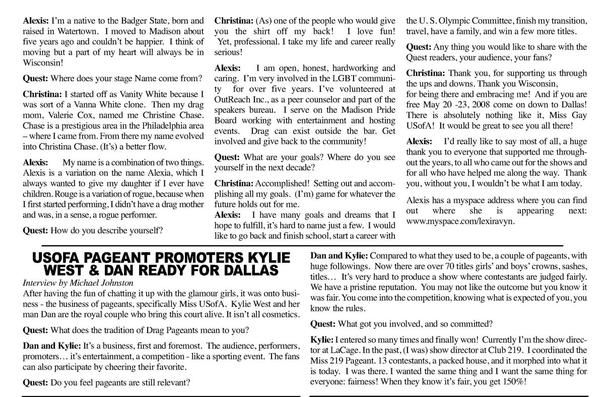 Article, Miss Cream City benefit show Quest magazine v8-12