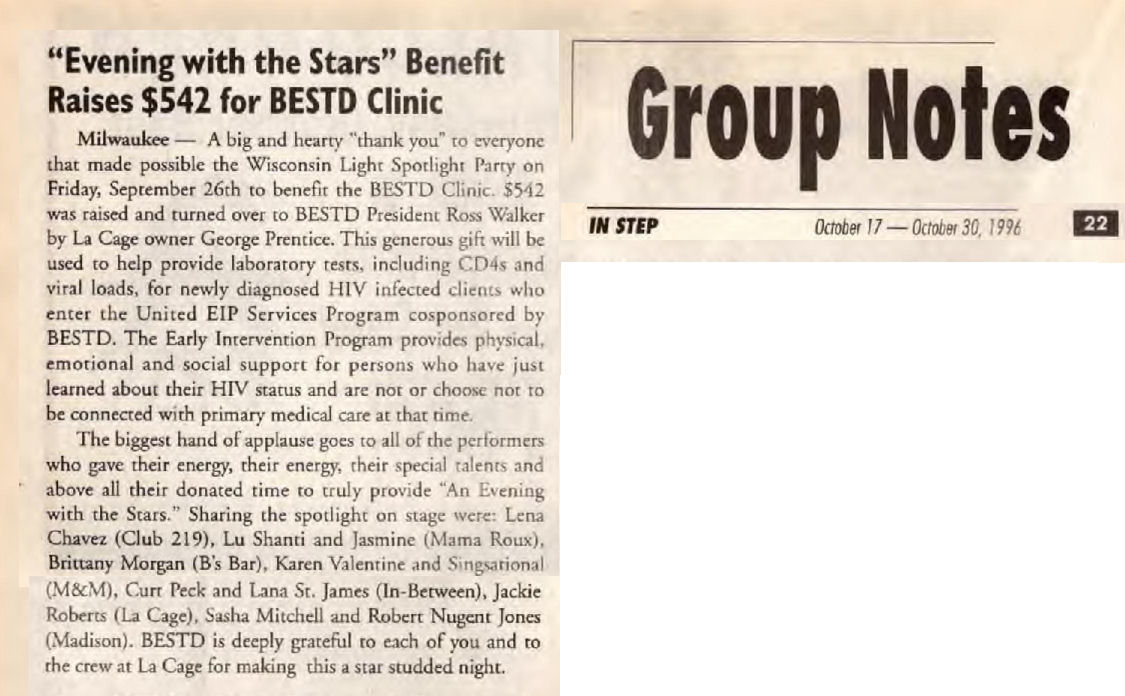Article, "Evening with the Stars" benefit show for BESTD Clinic InStep magazine v13-20, October 1996