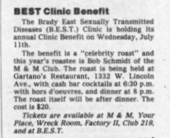Bob Schmidt has been active in the community both in various organizations (such as CCBA and BAM), but most visibly as a business owner. Bob Schmidt opened one of the longest running bars in Milwaukee, the M & M Club, in 1976 (with two partners). He bought out the partners within 3 years, and went on to own and operate the business for almost 25 years: first as a bar, soon adding food service (Friday fish fries were especially popular), and then adding on to the historical building and opening a full service restaurant, sometimes called The Glass Menagerie Restaurant. One of the most community-minded bar owners, Bob converted the second floor of the M&M Club bar into a meeting space, inviting many community organizations to hold meetings and group dinners in the space. He was always one of the first to give support to community events and fundraisers, such as hosting an SSBL/ Saturday Softball team, promoting Possum Queen and AIDS fundraisers, and hosting free flu vaccination shots each fall administered by the Gay and Lesbian Nurses Association. Bob sold the business to one of his long-time bartenders in 2001, but continued to own the building until 2006, when the building was sold, and Bob's passion, the M&M Club, closed for the last time. As of 2022, Bob is enjoying retirement, living in Palm Springs, California. He continues to return to Milwaukee often, most notably for irregular "M&M Club Reunion" events held in the old bar.