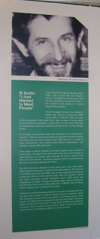 Smits has owned the Bootcamp Saloon for 18 years. He always went to a bar after work himself, so when he needed to move, he rented a space that combined a tavern with living quarters. Like military service, social groups, and AIDS, bars have played an important role in LGBT culture and politics at least since World War II. In that sense, Si Smits has covered all the bases, and in owning the Bootcamp for nearly 20 years now, brings his involvement in Milwaukee's LGBT community full circle.