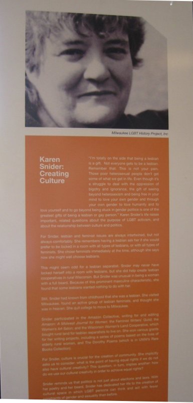 Still, Snider had known from childhood that she was a lesbian. She visited Milwaukee, found an active group of lesbian feminists, and thought she was in heaven. She quit college to move to Milwaukee.