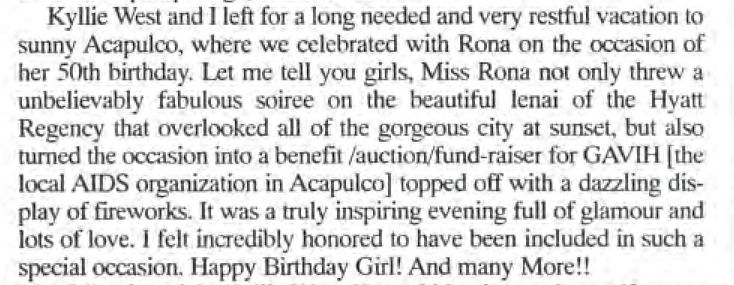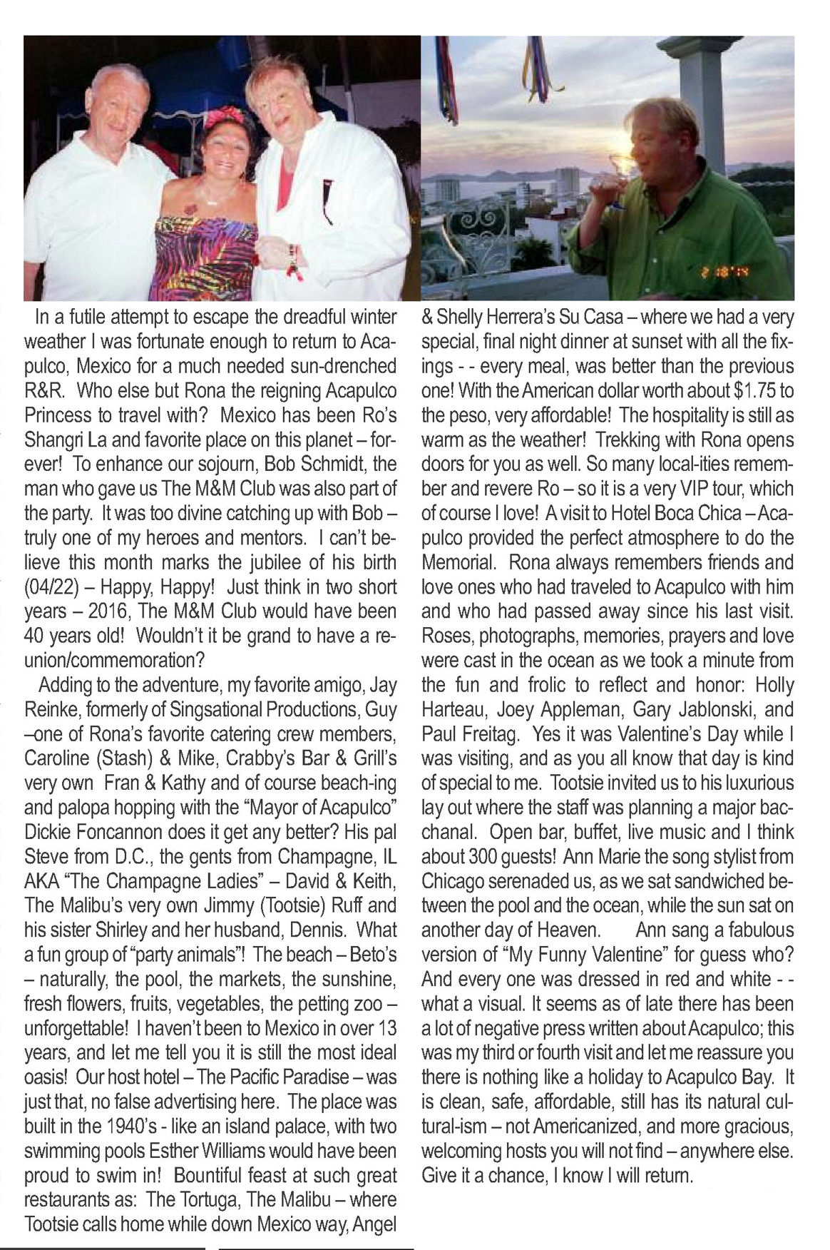 Account of one of Rona's annual trips to Acapulco in Michael Johnston's 'Cordially Yours' column