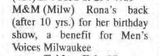 Rona to appear in drag after 10 years in a benefit for Men's Voices Milwaukee chorus