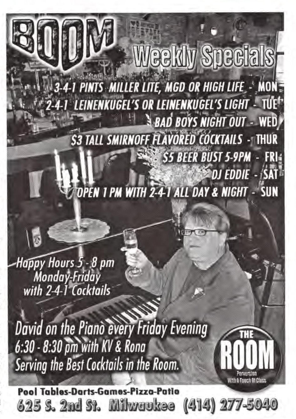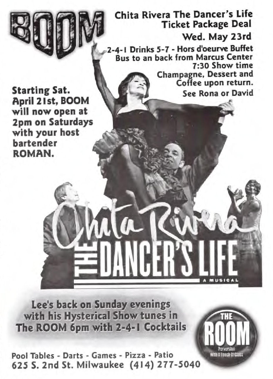 Ad: Boom & The Room bar: Rona organizing a Marcus Center performance package