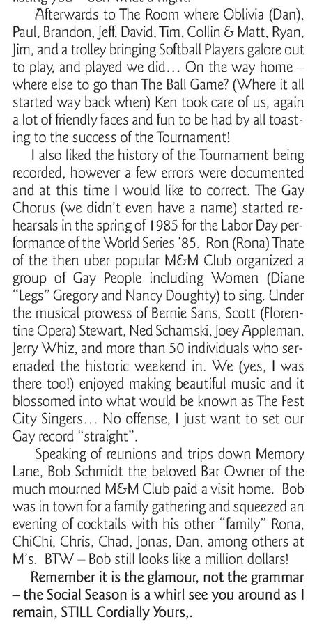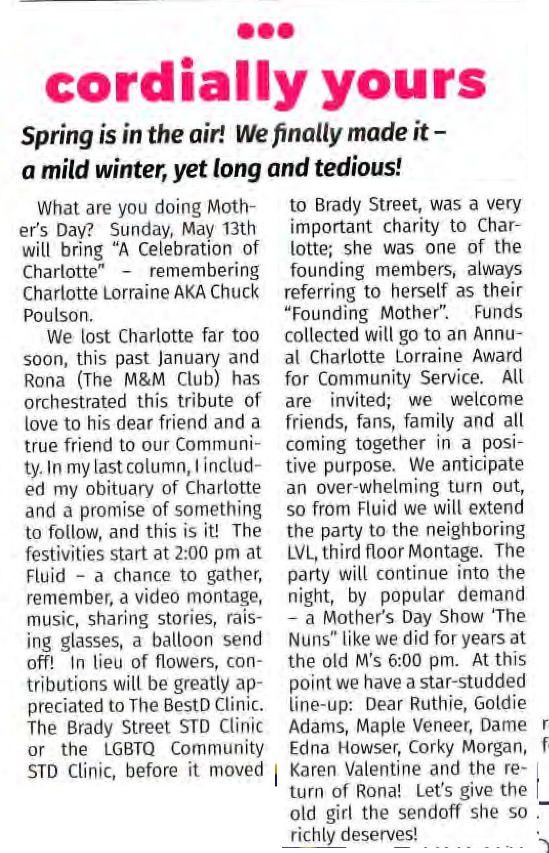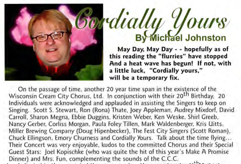 'Cordially Yours' column: thanks to Rona and others for keeping Cream City Chorus alive