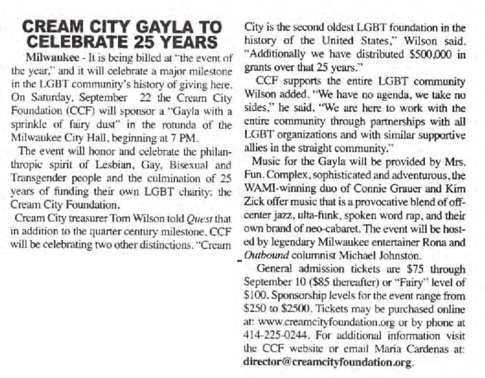 Article: Rona nd Michael Johnston to host Cream City Foundation 25th year gala