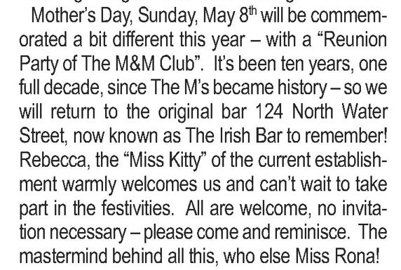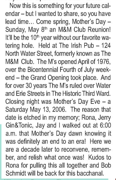 'Cordially Yours' columns: Rona organizing M&M Club reunion 10 years after it closed