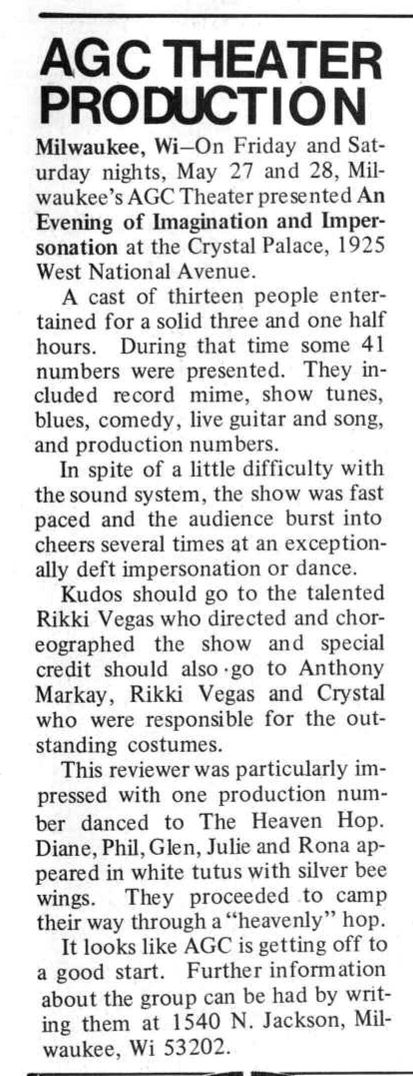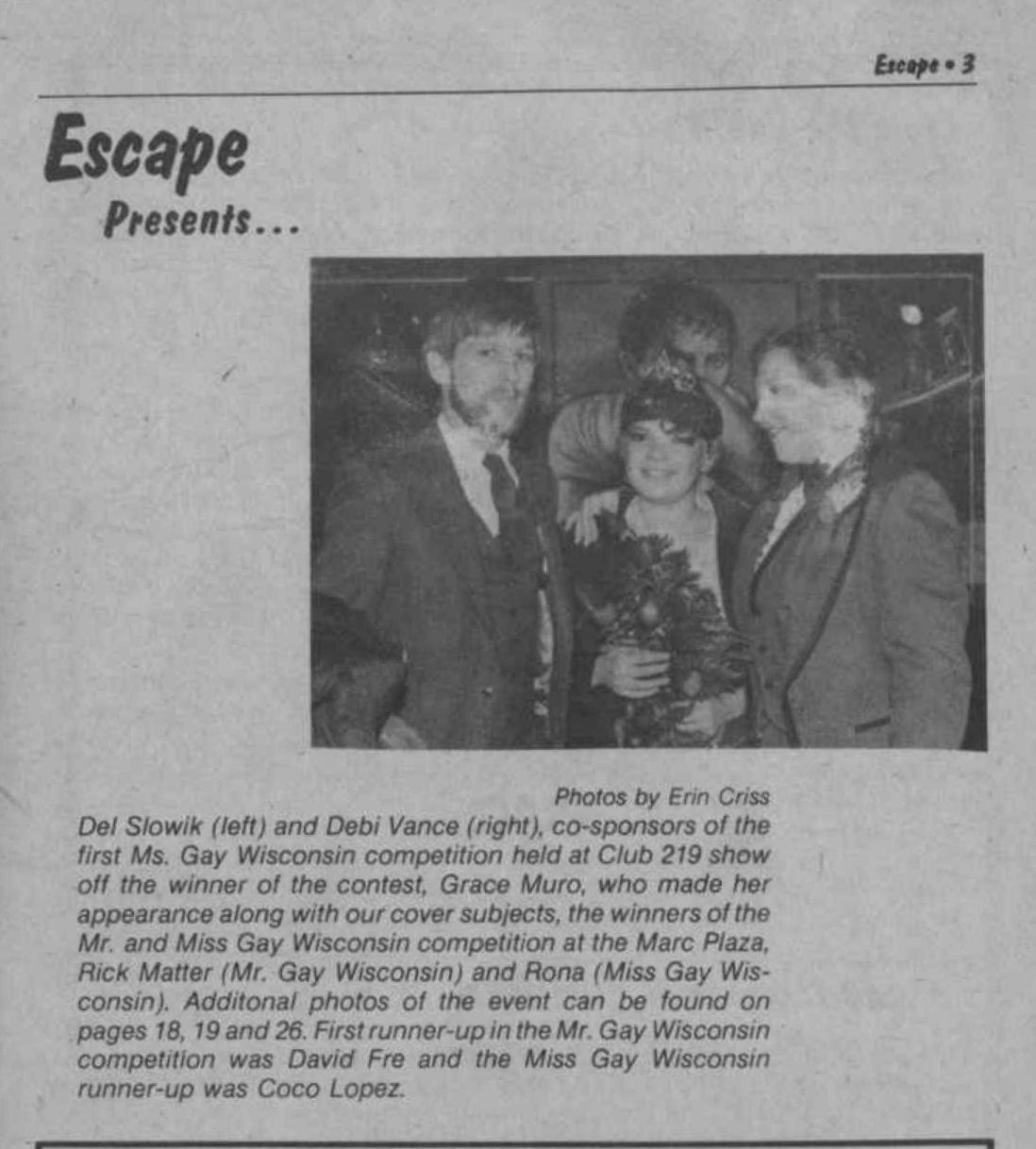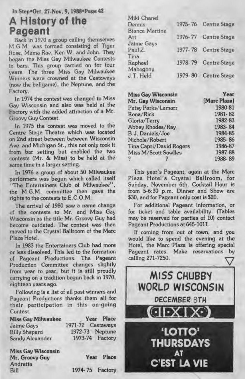 History of the Pageant (Rona winner of Miss Gay Wisconsin 1981-1982)