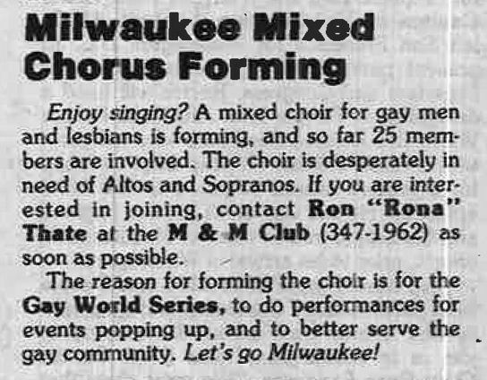 Milwaukee Mixed Chorus forming, Ron the contact; and review of its first show