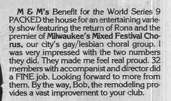 'Cordially Yours' column: Rona credited as one of the founders of Cream City Chorus