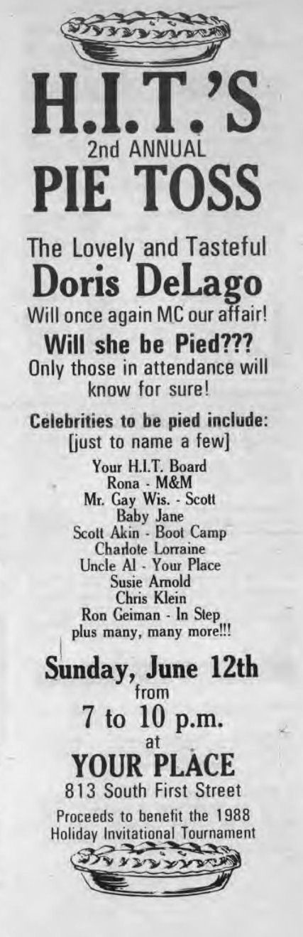 Ad: Holiday Invitational Tournament (H.I.T.)'s Pie Toss; Rona to be 'pied'
