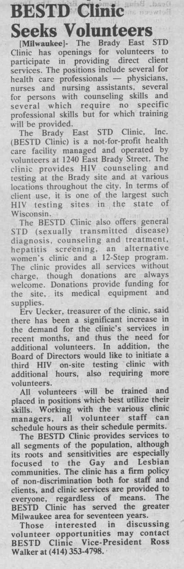 Article: Clinic seeks volunteers