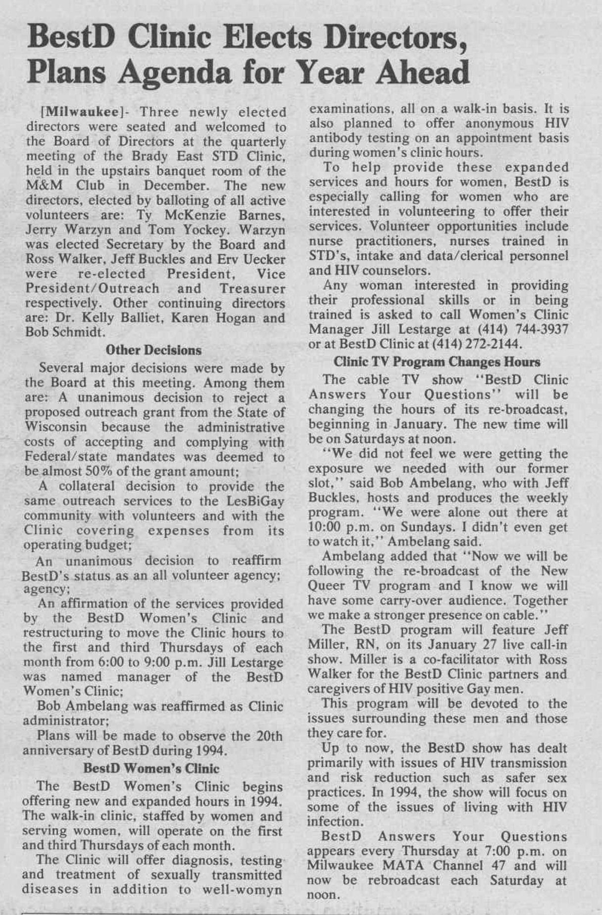Article: Clinic elects directors & officers