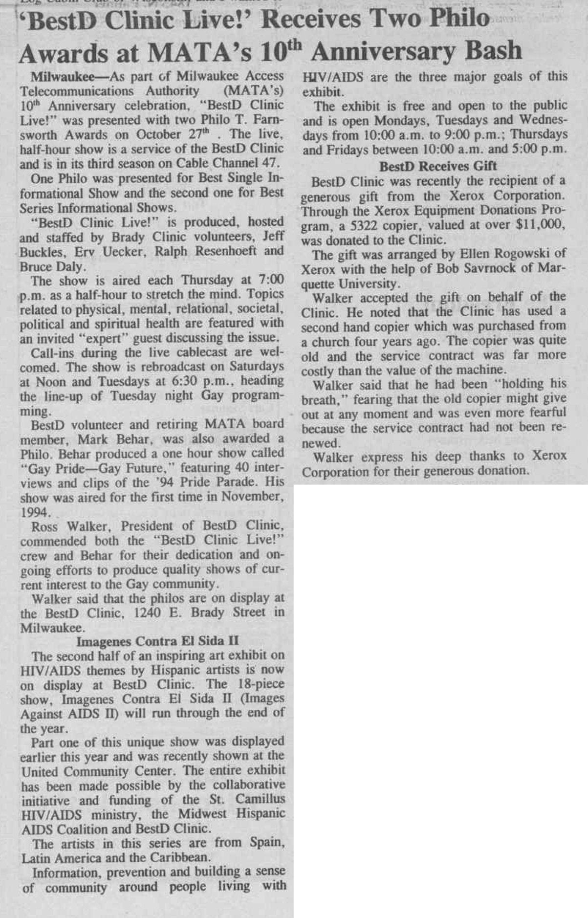 Article: BESTD thanks donors;