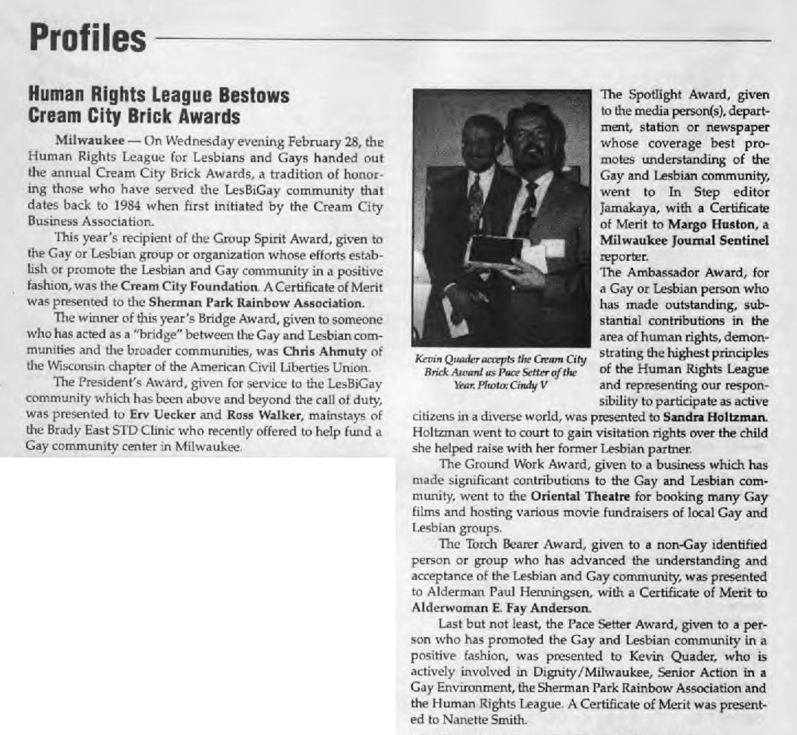 Article: Pridefest Community Service Award