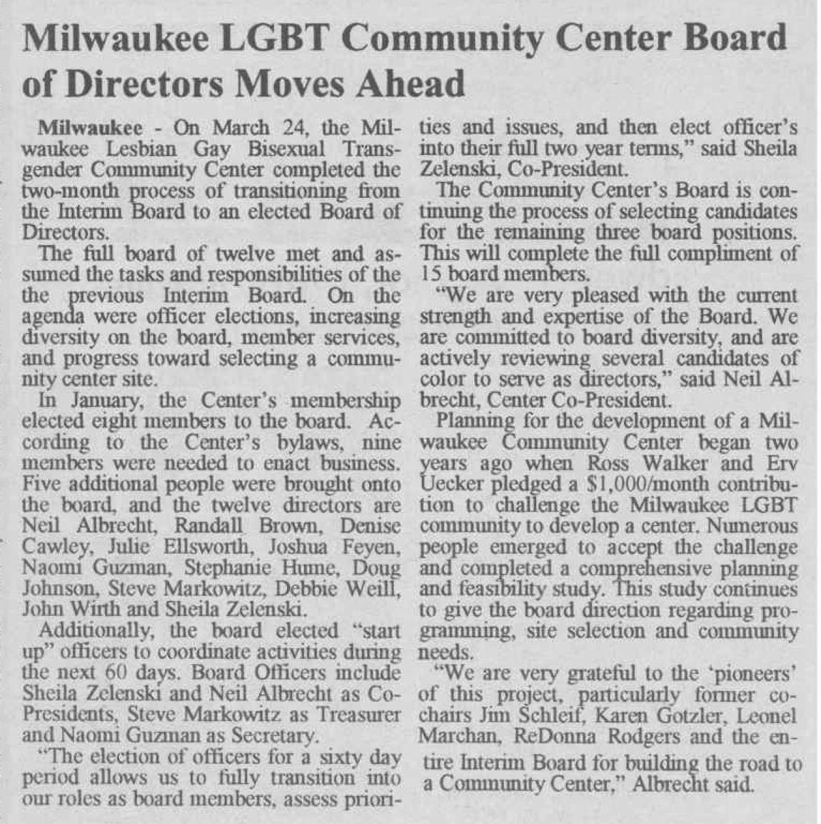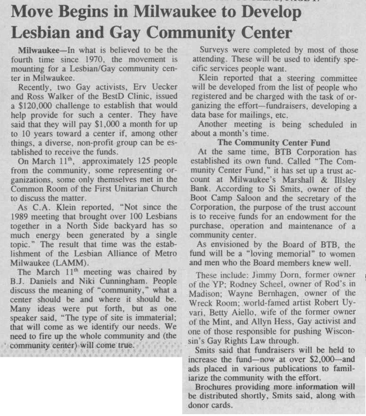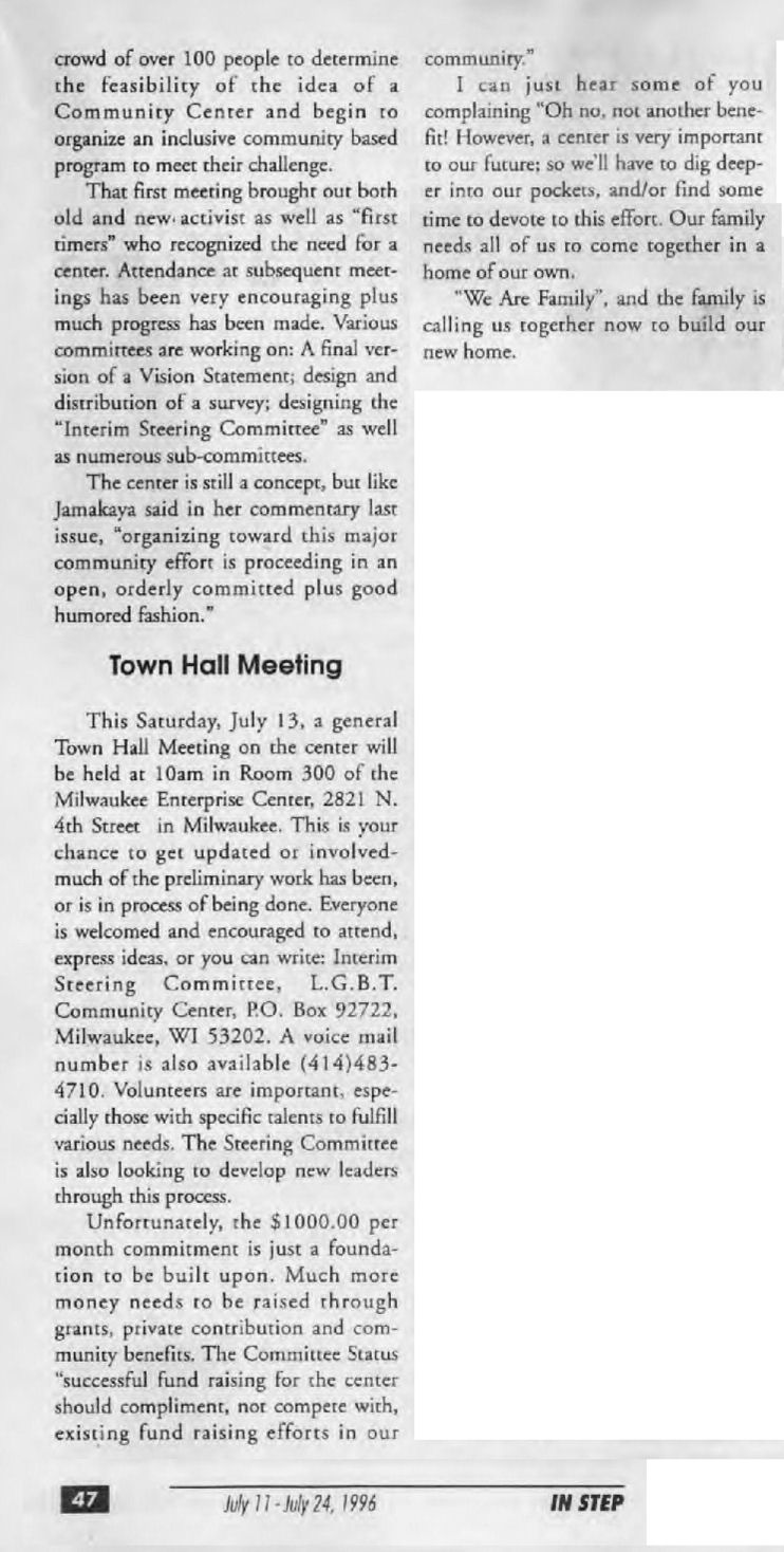 Article: Milw. Community Center update: