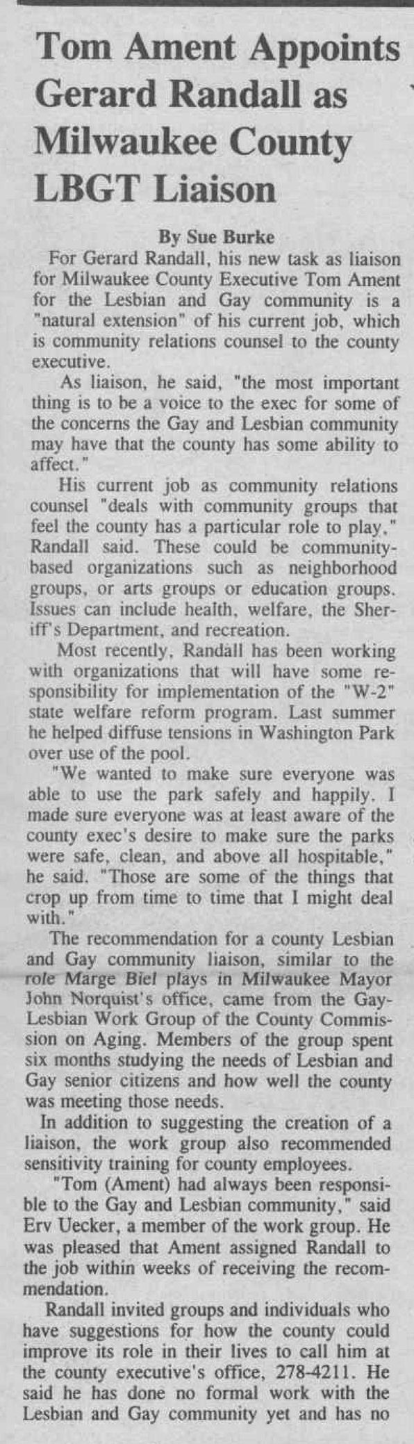 Article: Tom Ament appoints LGBT Liaison
