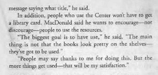 suggesting donation to Community Center
