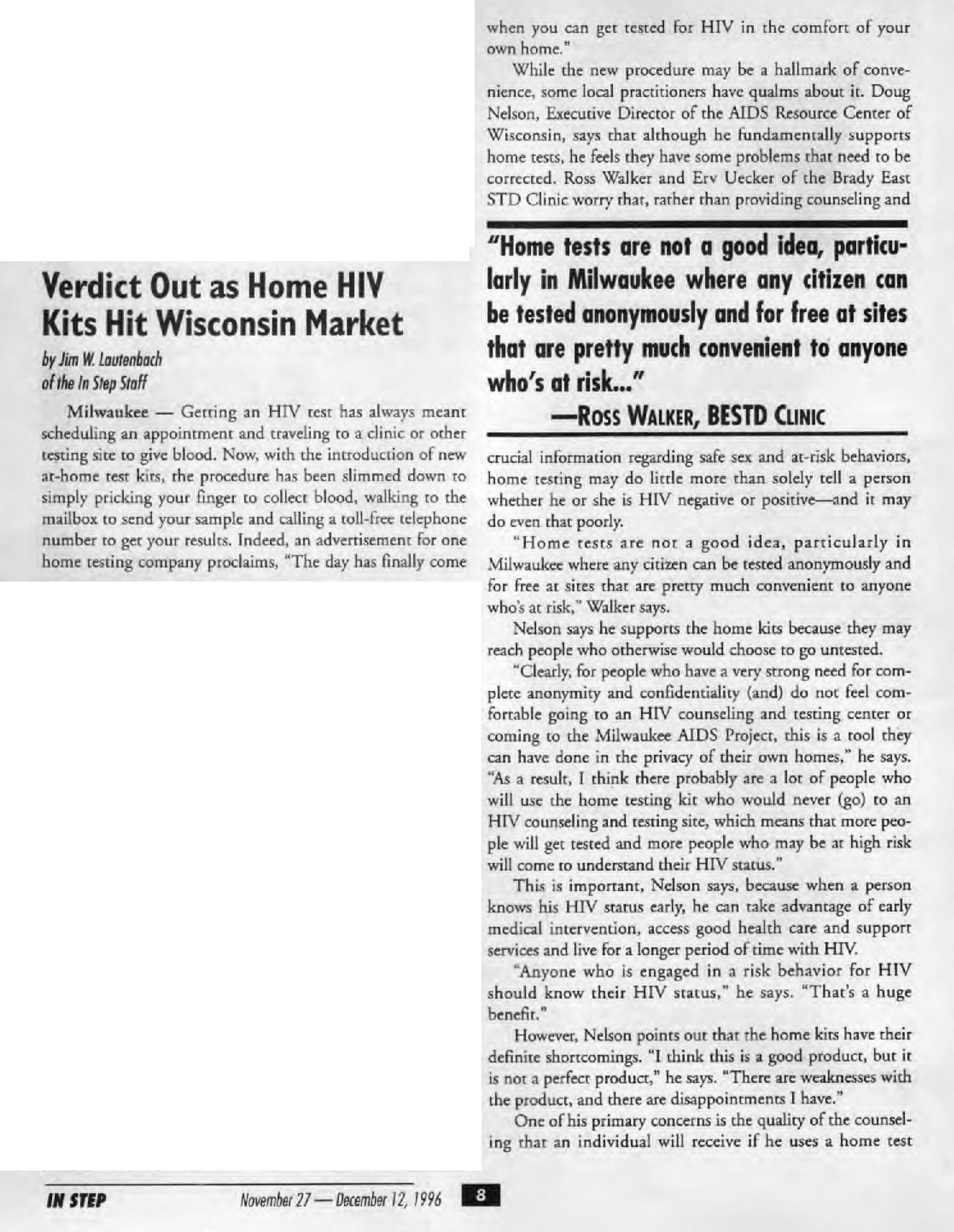 (In Step vol. 13-23, November 1996)