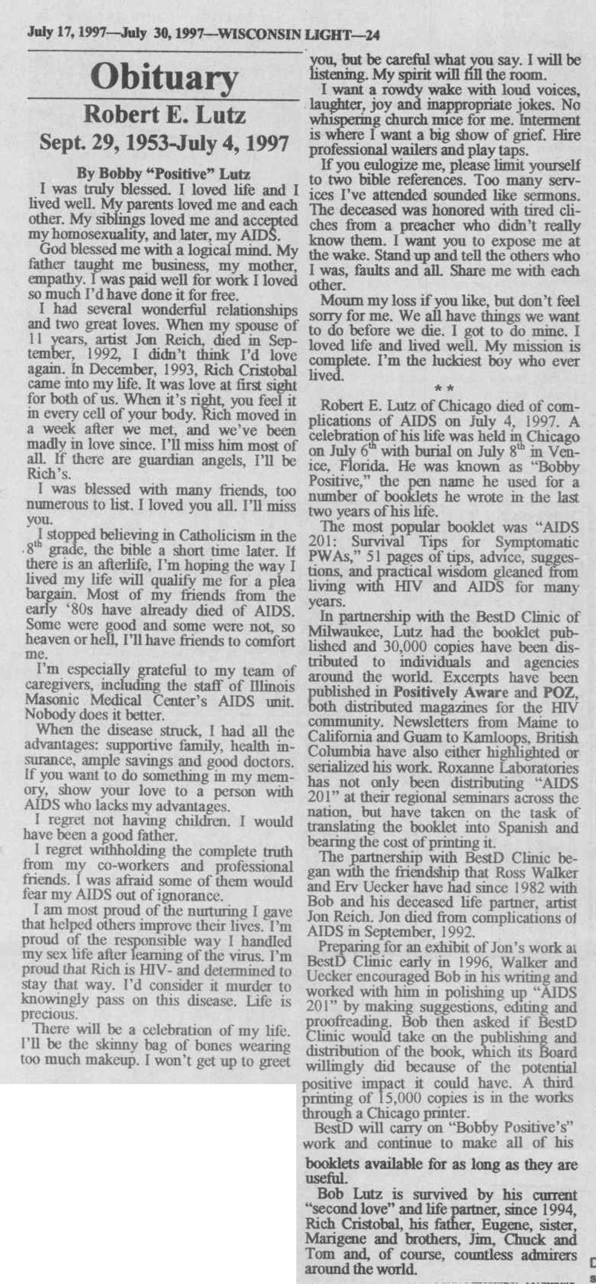 Article: booklet by deceased Robert Lutz