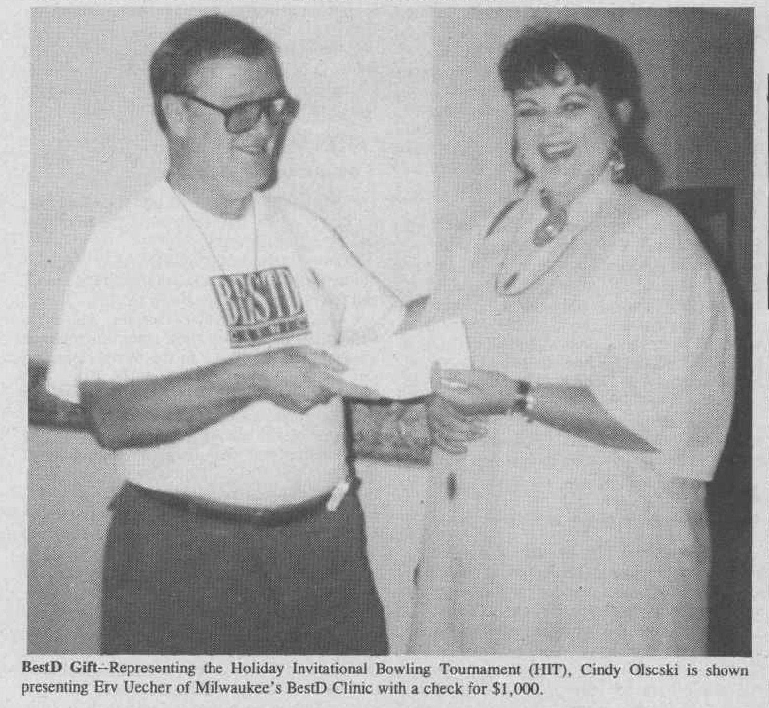 In March 2024, the Wis. LGBTQ History Project officer Michail Takach interviewed the couple to document their life, and they were looking forward to celebrating their 67th anniversary as a couple in November 2024. Sadly, Erv Uecker passed away on November 15, 2024, before the article documenting their interview could be published. His obituary read as follows (much of it taken from the Wis. Light article): Obituary for Erwin Albert Uecker Erwin (Erv) Uecker said, when asked about his life goal: "To leave this human family in a little better condition than I found it." And that he did in spectacular fashion his whole life long. Erv was born in Chicago, Illinois on July 2, 1932. On the day he was born, the Democratic National Convention was held in Chicago. Franklin D. Roosevelt and his motorcade to the convention went right past the hospital Erv was born in. Erv's grandfather remarked on FDR passing by the hospital, "There goes one president, and here comes another president" referring to the birth of his grandson. Erv enjoyed a very rich life, both personally and professionally. He met the love of his life, his husband Ross Walker in June, 1957 through a mutual friend. "It wasn't 'Love at first Sight', we were 'Friends at first Sight', said Erv. And they remained the best of friends through all their 67 years together. Perhaps that's the key to a relationship which has taken them from a Lutheran parsonage in Chicago, to a horse breeding farm, and finally to Milwaukee, where they were instrumental in keeping the BESTD Clinic operating. Erv said he was a "recovering Lutheran". He was ordained as a Lutheran Minister in 1968. For ten years, he was the Pastor at Chicago's St. Luke's Lutheran Church, where he directed a staff of four associate pastors. Although the church was in a middle class, blue-collar neighborhood, the couple lived together in the parsonage. "Everybody did what they had to do to deal with it," said Erv. "Some people thought we were brothers until both our mothers showed up at church one day." The two also bought a horse-breeding farm in Oxford, Wisconsin. They bred horses there for about 12 years before ending it. In 1983, the couple stopped in Milwaukee on their way through to sell a property. "We were going to retire at Marco Island, Florida. But, we met some friends in Milwaukee. We decided we didn't need Florida." That fateful decision was Milwaukee's gain. Erv and Ross got very involved in the BESTD Clinic. They both worked full-time, without pay, for the Clinic. They were also instrumental in the founding of the Milwaukee LGBT Community Center. In addition to activism and personal time involvement, they provided the initial money by making a long-term pledge of money toward rent and operating costs of a true community center. Again in 2015, Erv took on the role of pastor in becoming an Interim Pastor of Pilgrim UCC Church in Grafton, WI, for six months, after the departure of Pastor Franz Rigert, to keep the church moving forward during a critical period of transition. Erv will be greatly missed by his devoted husband, Ross, and by the many extended family and friends, including those at Alexian Village, where he has lived for the past 14 years, by the LGBT communities he was such an integral part of, to the many church congregations that were blessed to have Erv as their pastor for years. The Memorial Service for Erv Uecker was to be held on Saturday, November 30th, 2024 at Pilgrim UCC Grafton, WI, 1621 Second Ave, Grafton, WI 53024. (Arrangements by Hartson Funeral Home) Recollections Contributed by Bill Meunier: Erv and Ross were instrumental in so many ways, not just with the Brady Street Clinic but with other things as well. I well remember when (we) wanted to put Rainbow Flags on City light poles downtown and in the gayborhood on the lower East Side, PrideFest didn't have the money. So I called Erv. I was hoping to get $100 but he asked me how much it would cost for everything and I told him the poles, flags and permits would be around $500 (around $1,200 in today's dollars) He checked with Ross and they quickly produced the check. It seems like a small thing now but back then it was a big deal. We were fighting AIDS and needed a morale boost. Furthermore, it was important to show our pride by flying our flags alongside of the ones other festivals put up on Wisconsin Ave. It was a defiant message that we are a strong vibrant community, and we are just as much a part of this community as the everyone else who had flags flying on Wisconsin Ave. We put them up the after 10 pm the night before the Milwaukee Classic Softball tournament began. Only a few of us knew what we were doing. We wanted to surprise the community and our out of town visitors. The flags were the talk of the tourney. I remember going to the diamonds and hearing one excited local telling his teammates how stunned he was to see Rainbow flags up and down Kilbourn. He kept jumping up and down yelling, "Oh my God. You got to see it. It's so beautiful." One of his team mates gushed about seeing them on Juneau. Later that day someone came up and gave me a hug. She and her partner drove up and down Wisconsin three times to see the flags with tears in their eyes. I heard a player from Chicago tell his team mates that he'd seen them downtown. They seemed stunned that Milwaukee let us do something they couldn't do in their hometown. Someone told me that at the tournament banquet an out of towner said that after seeing those flags he realized Milwaukee is the winner no matter who takes home the trophies. All of those fantastic feelings came about because Ross and Erv understood the need and shared the vision like they quietly did so many other times and so many other ways. Those feelings spread beyond Milwaukee. We got calls from Pride organizers in other cities asking how we were able to get that done. In answering their questions, the first thing I told them about was the generosity of Ross and Erv. That