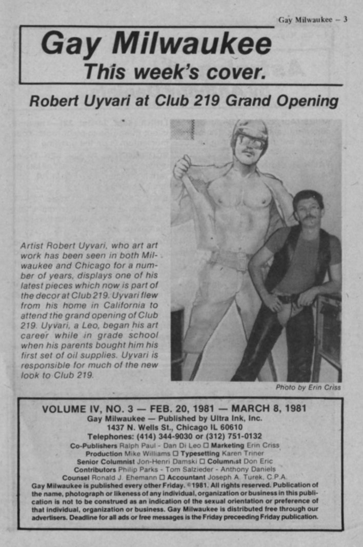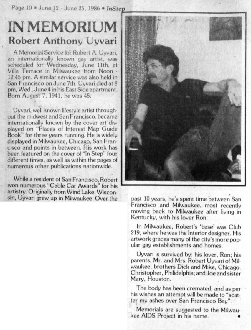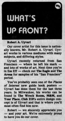 ("Places of Interest" was a prominent gay/ lesbian travel guide; its promotional materials and covers featured works by Uyvari for the 3 years 1982 thru 1984.)