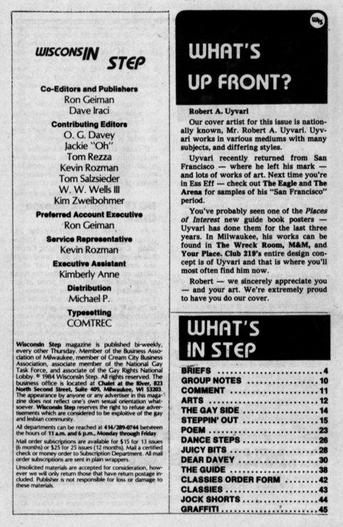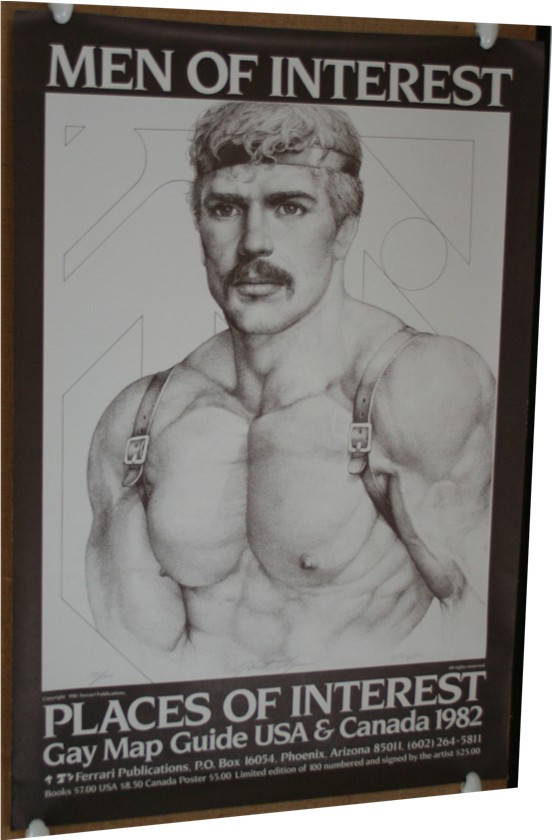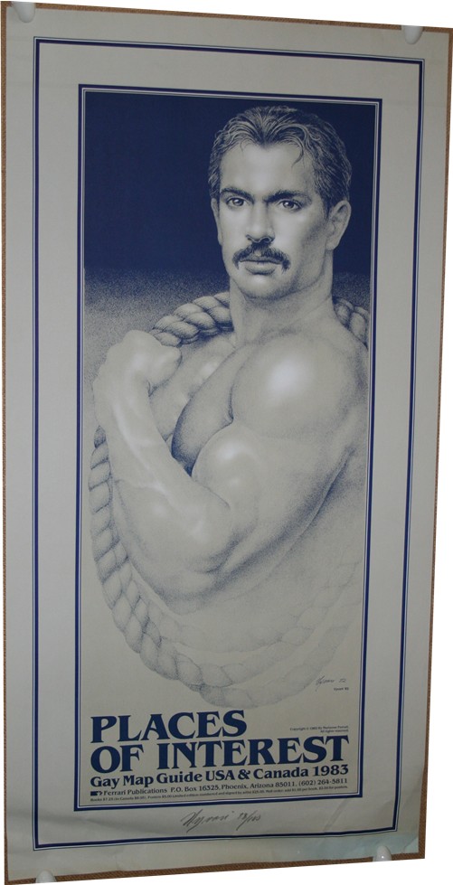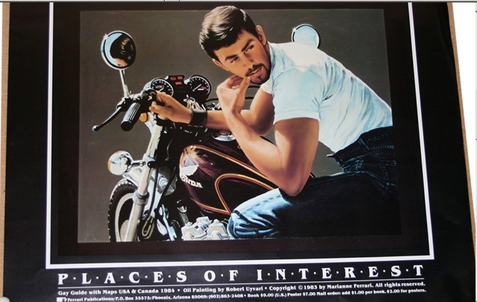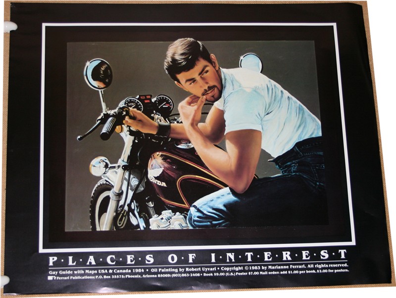 "Places of Interest" was a prominent gay/ lesbian travel guide; its 1984 promotional materials and cover featured this work by Uyvari.