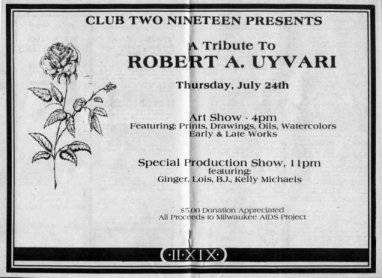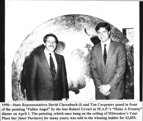 (shown at 1990 auction to benefit Milwaukee AIDS Project, with David Clarenbach and Tim Carpenter)
