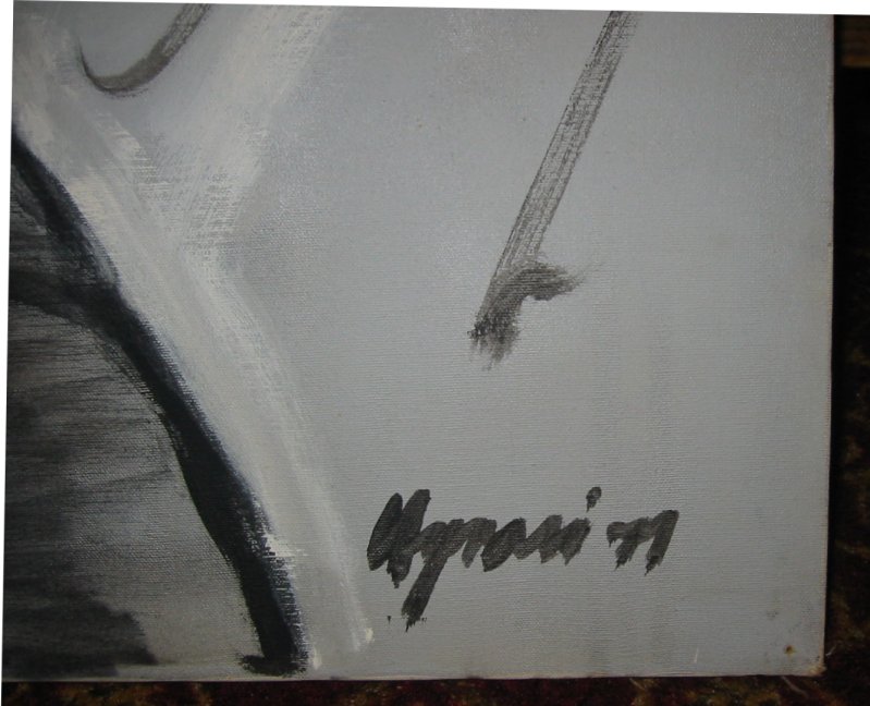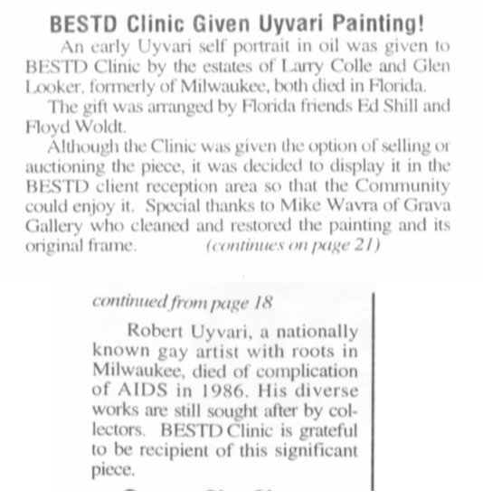 c1965: A Self Portrait (This work is still in its original frame selected by Uyvari. It was donated to the BESTD Clinic in Milwaukee in 1997, and can be viewed in the client waiting room.)