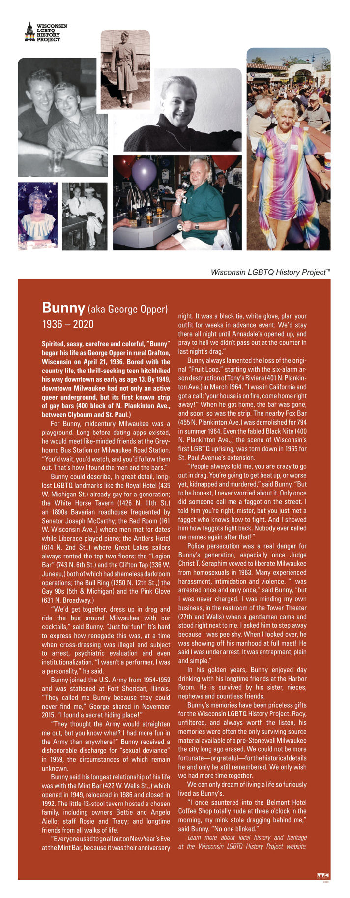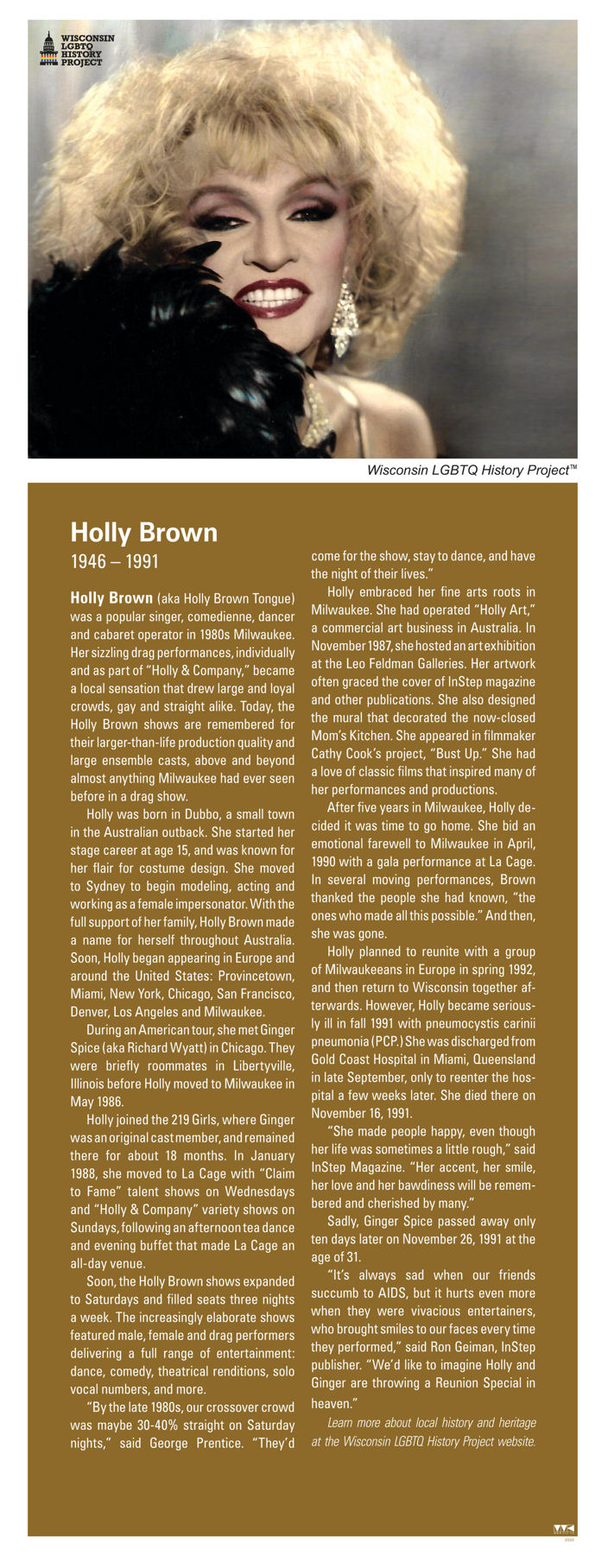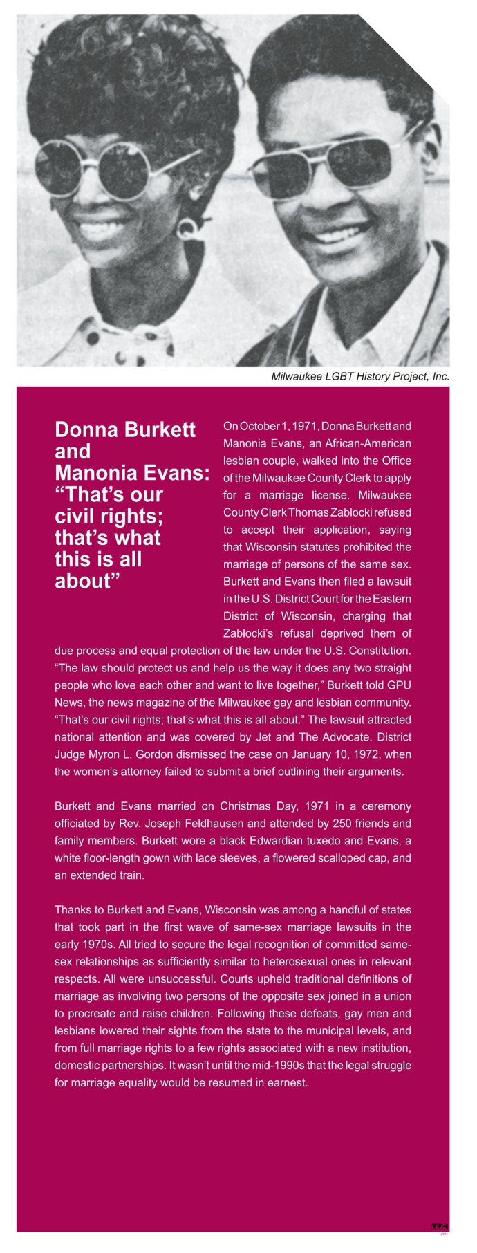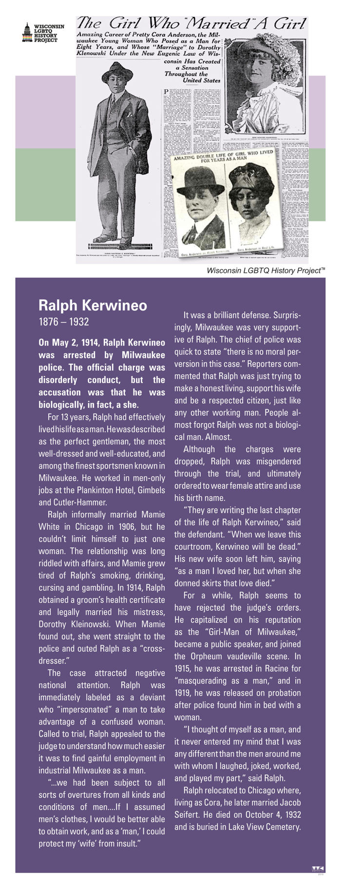 The following images indicate the historical panels developed either by the Wisconsin LGBTQ History Project, or by its predecessor, the Milwaukee LGBT History Project. A few of these panels may be 'in stock' but most would need to be printed should they be needed for a display.