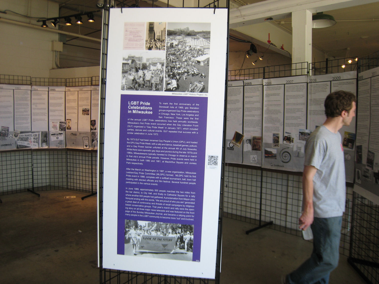 The display also featured the Interactive Timeline: a decade by decade, year-by-year timeline of major events in the LGBT history of Milwaukee and Wisconsin, juxtaposed with some major national events. As with the first Timeline display in 2005, people were able to read existing entries, but also add their own recollections and comments in given year blocks.